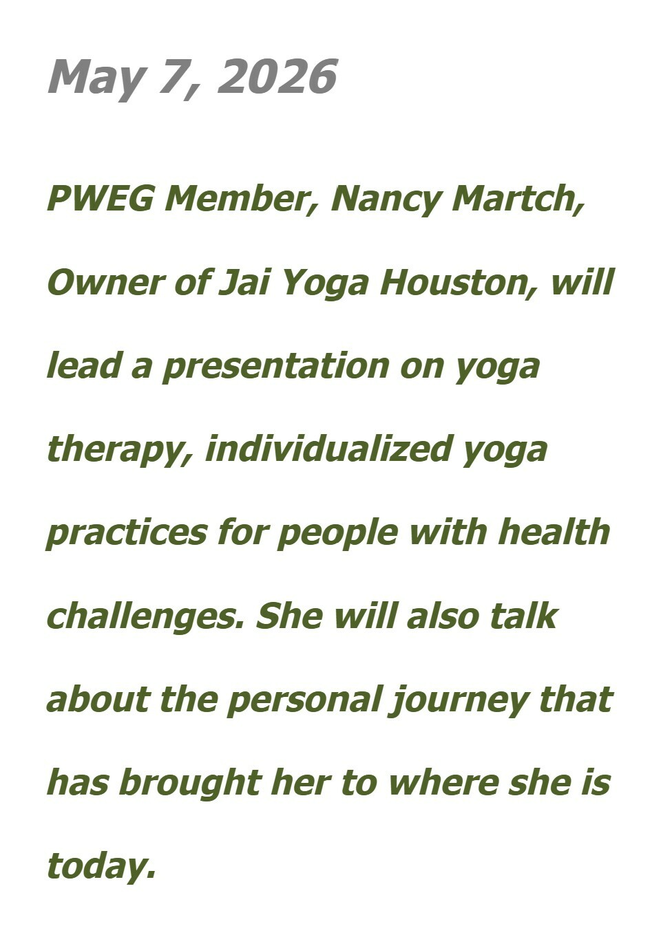 April is "Bring a Guest to PWEG" month.